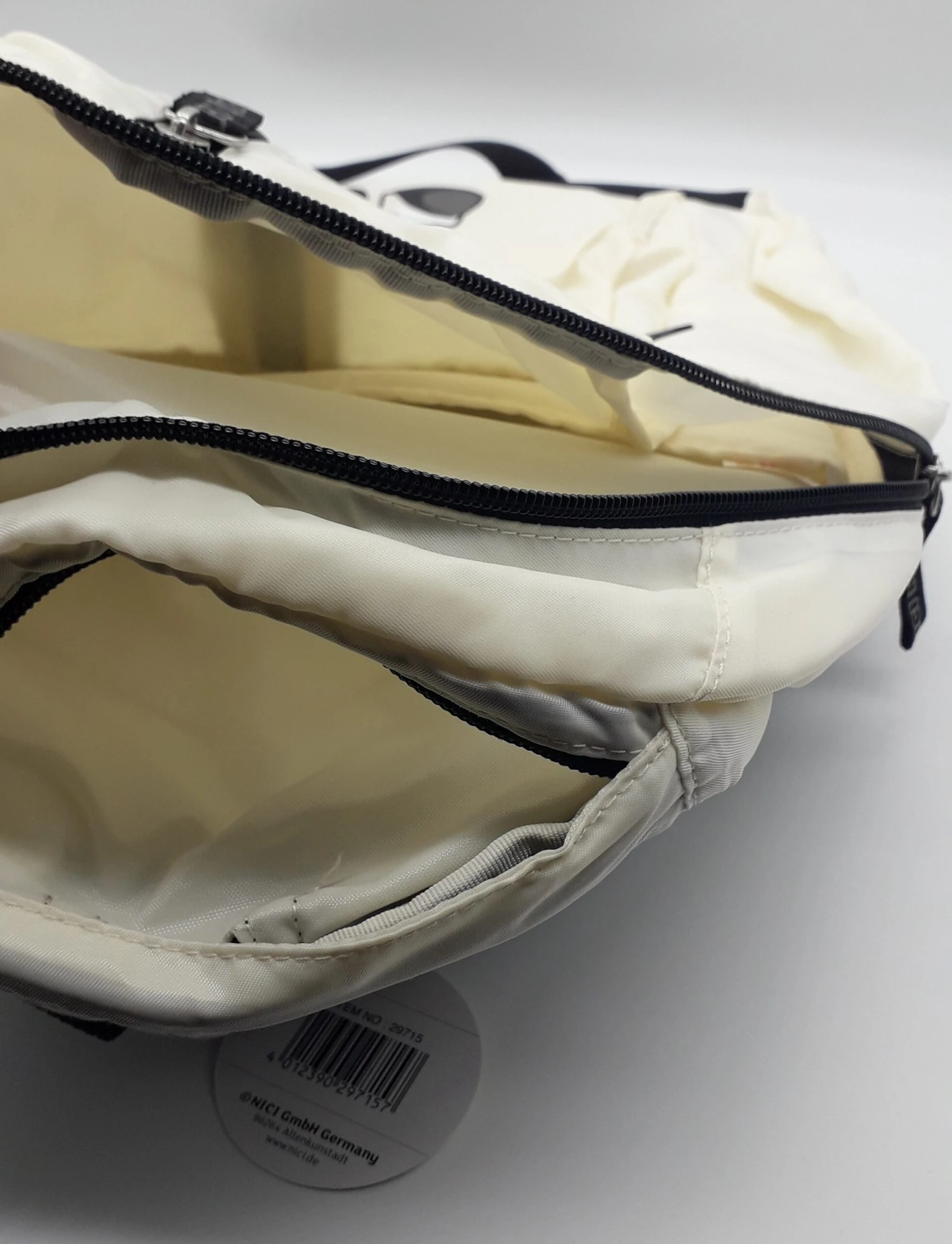Die Fächer lassen sich mit Reißverschluss öffnen
