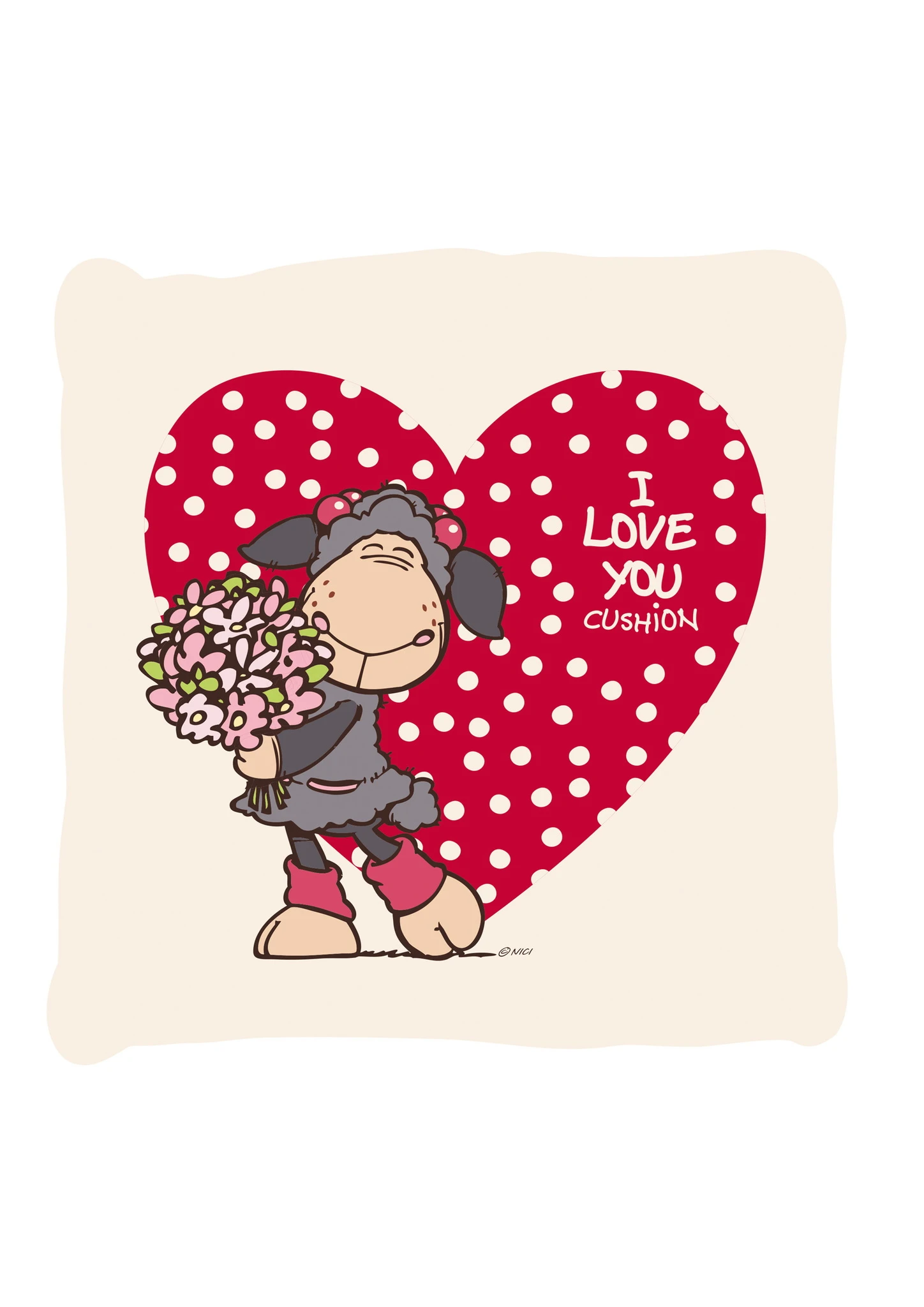 Nici 34588 Kissen Schaf Jolly Mäh Herz Blumen I Love You 26x26cm Plüsch