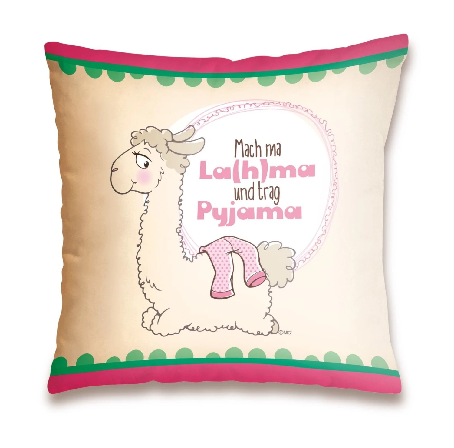 Nici 42163 Baumwollkissen Bedruckt Lama „Mach Ma La(h)ma“ 37x37cm